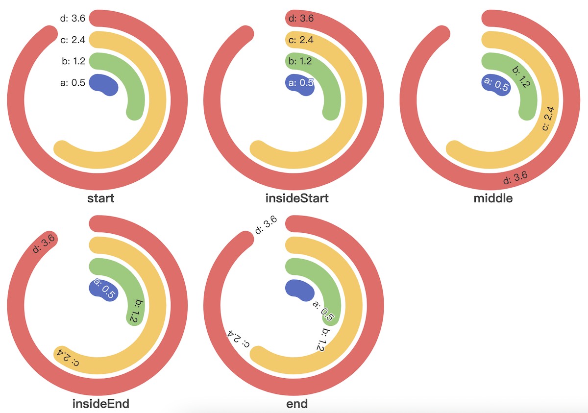 This flexible label position configuration item greatly enriches the expressiveness of the polar bar chart, allowing the text to clearly match the corresponding data.