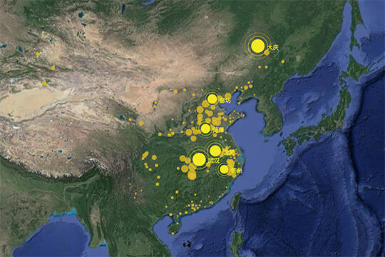 With Baidu map extension, you can display scatter charts, line charts, heatmaps and so on.